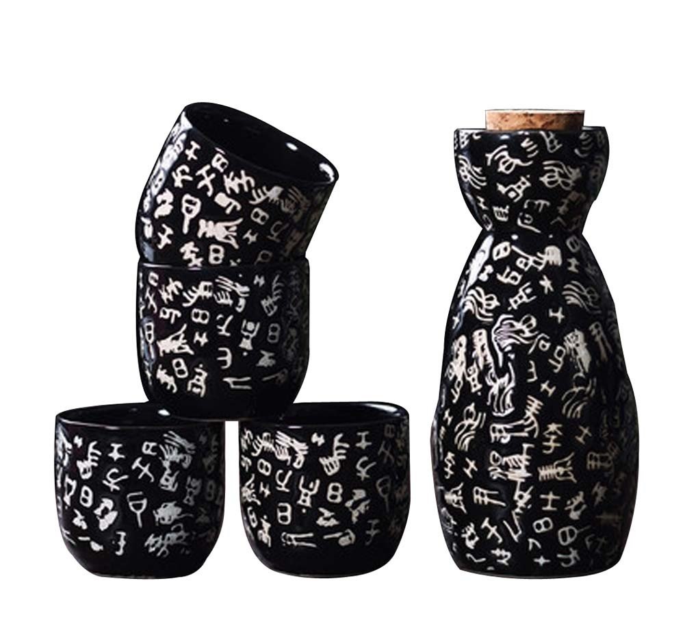 5 Pcs Ceramic Japanese Sake Set Traditional 1 Tokkuri Bottle & 4 Ochoko Cups [O] 5 Pcs Ceramic Japanese Sake Set Traditional 1 Tokkuri Bottle & 4 Ochoko Cups [O]